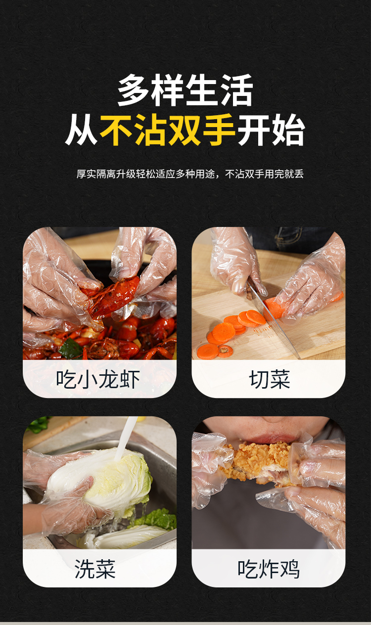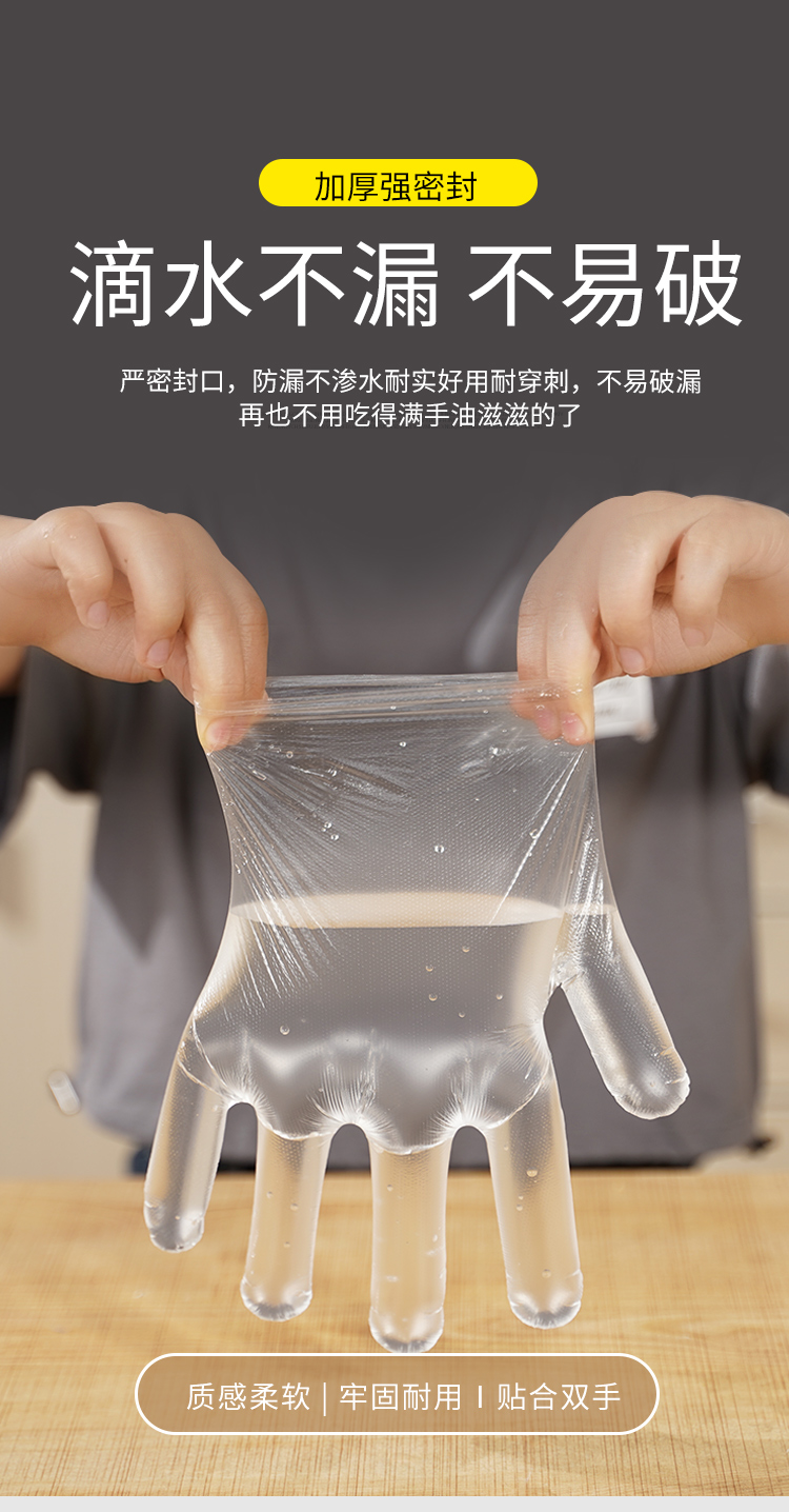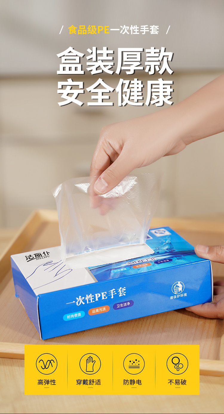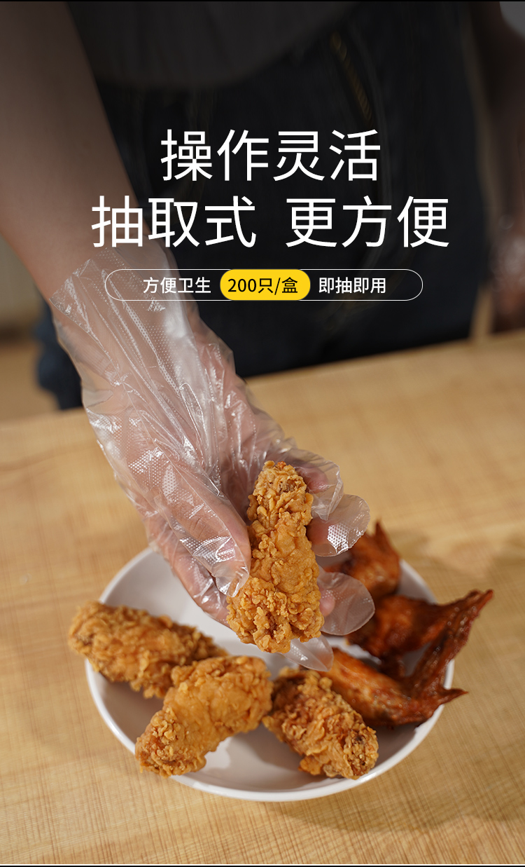 抽取式一次性PE手套盒装食品餐饮塑料薄膜家用透明加厚耐用
