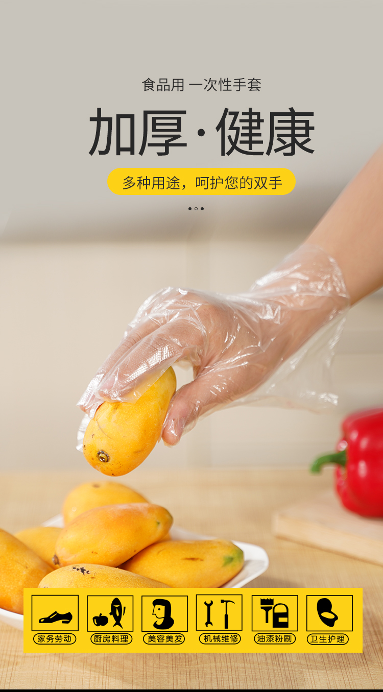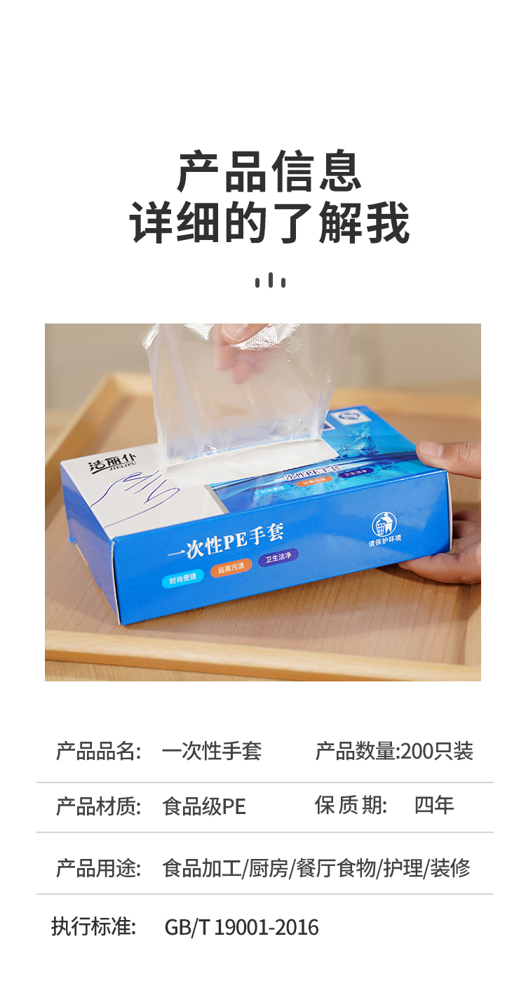 商品名称:抽取式一次性PE手套盒装食品餐饮塑料薄膜家用透明加厚耐用