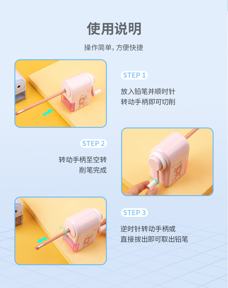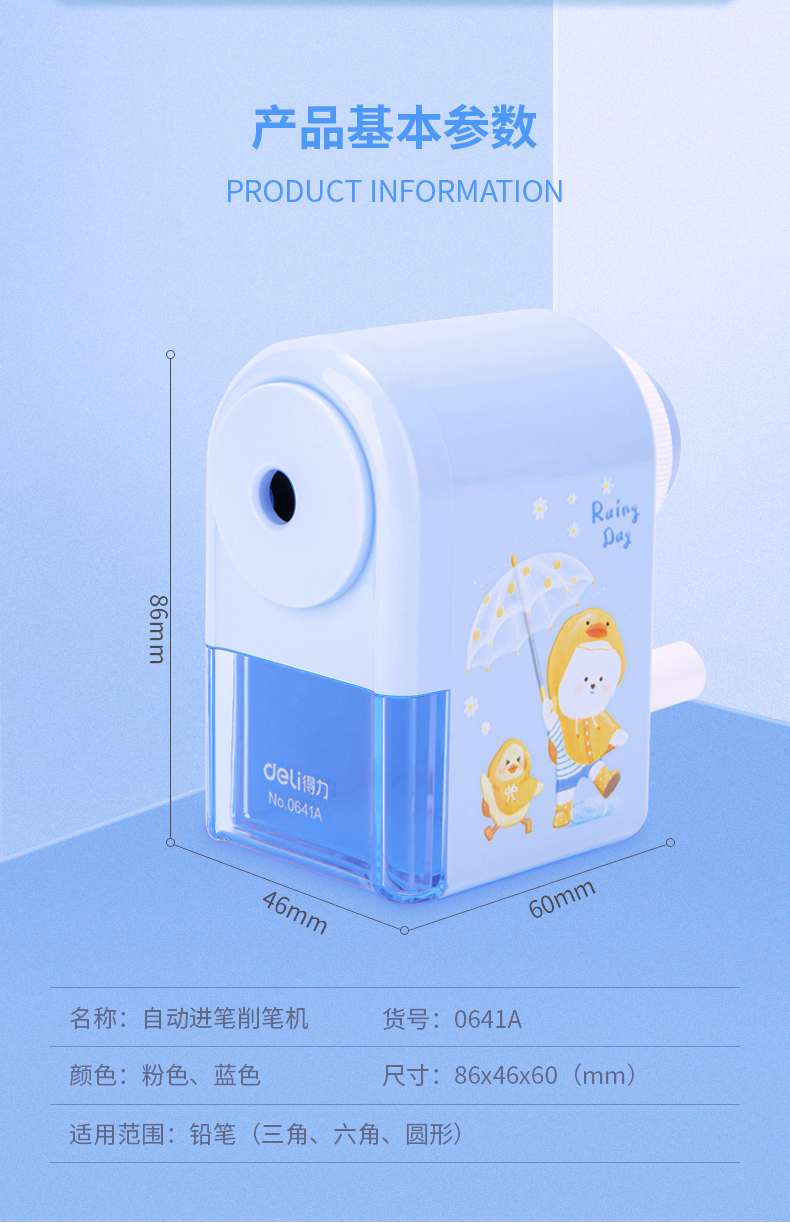 商品名称:得力手摇卷笔刀1个转笔刀专用削笔刀自动进铅铅笔削笔器手动钻笔刀