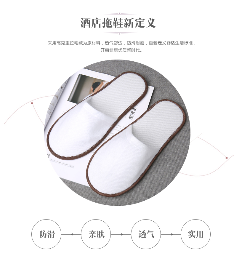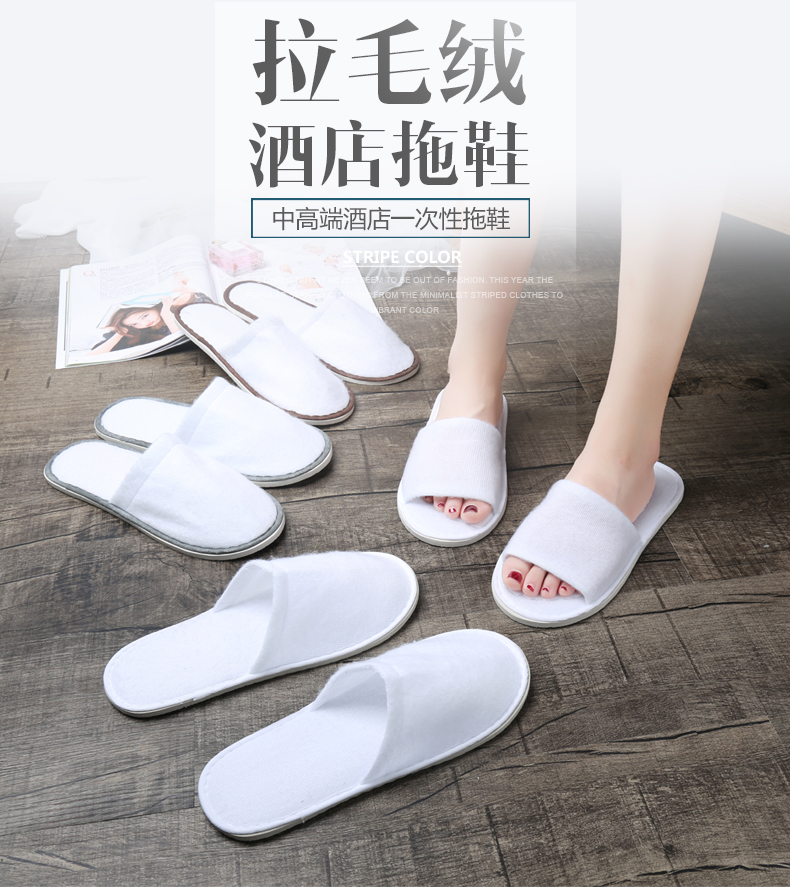 商品名称:一次性拖鞋100双民宿室内拉毛绒布加厚防滑酒店宾馆批发待客拖鞋