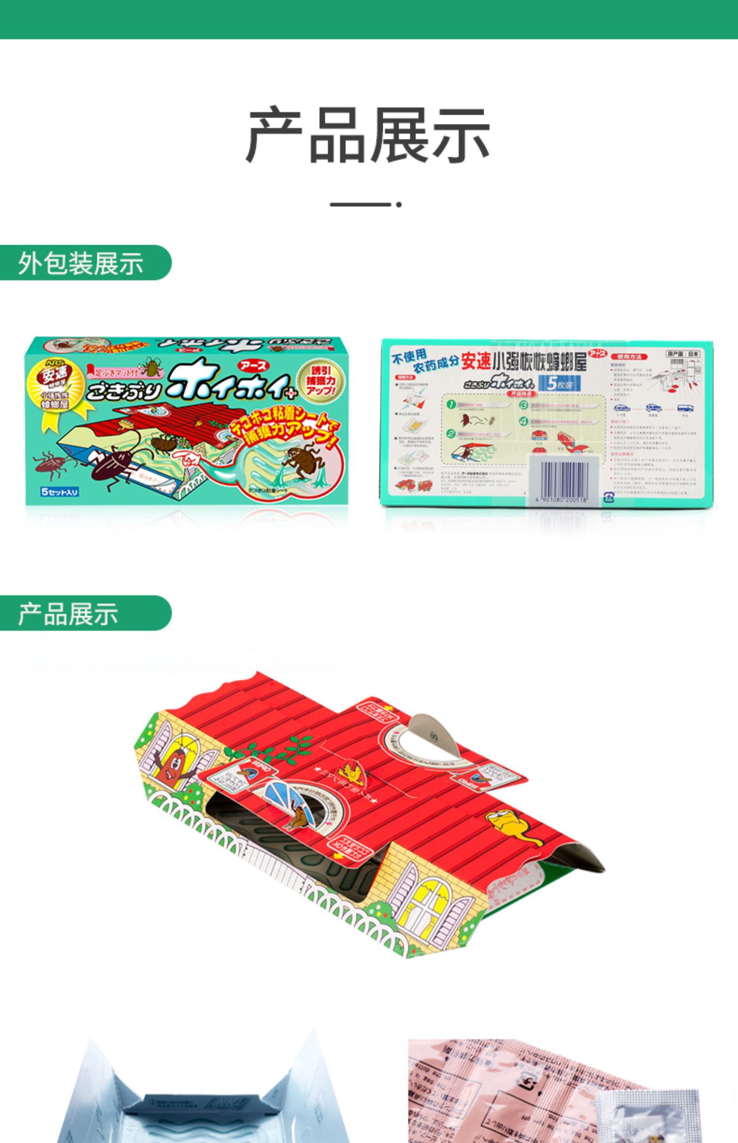 商品名称:日本安速蟑螂强力粘无毒小屋子20片