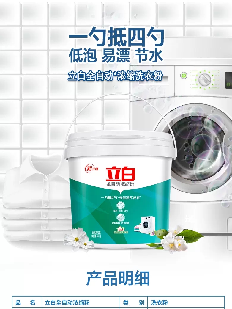 商品名称:立白全自动浓缩洗衣粉低泡易漂用量少实惠装900g/桶