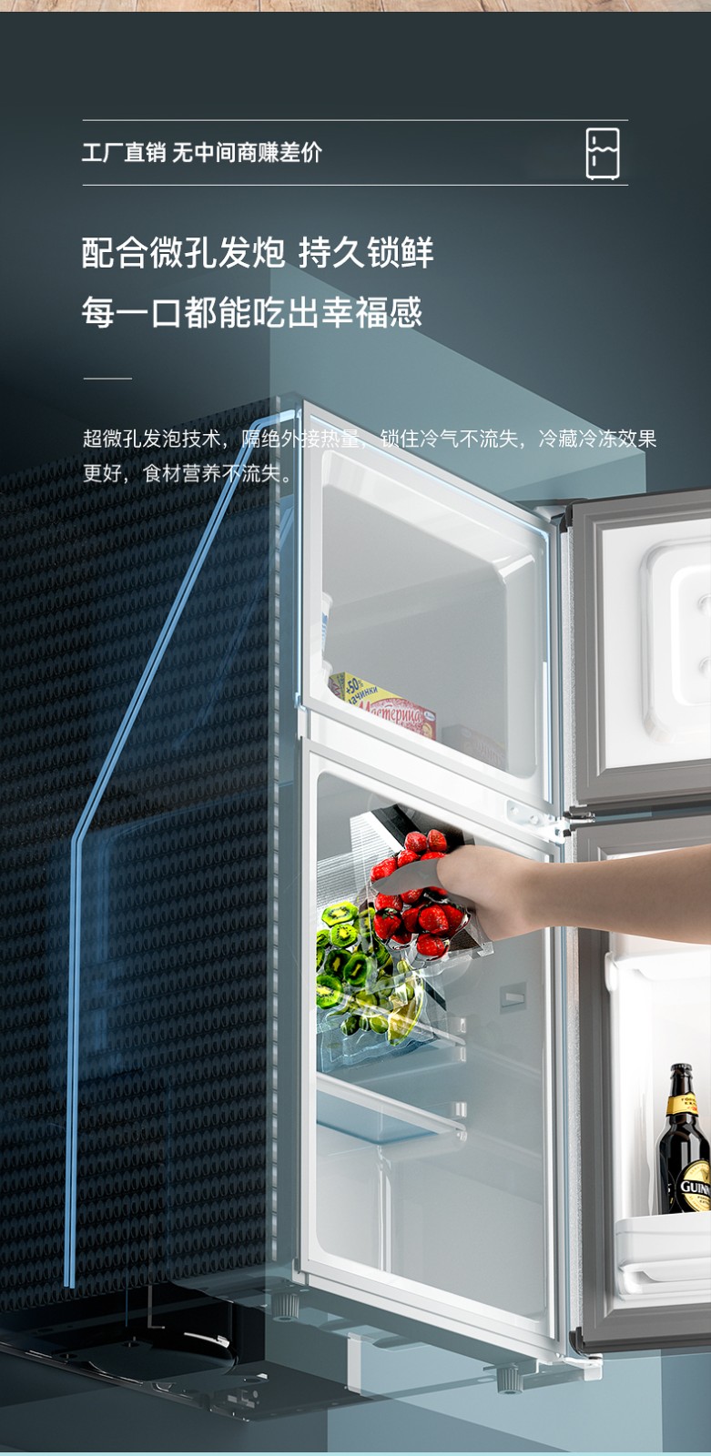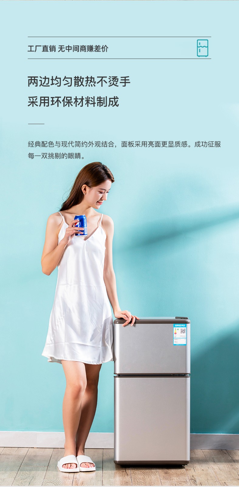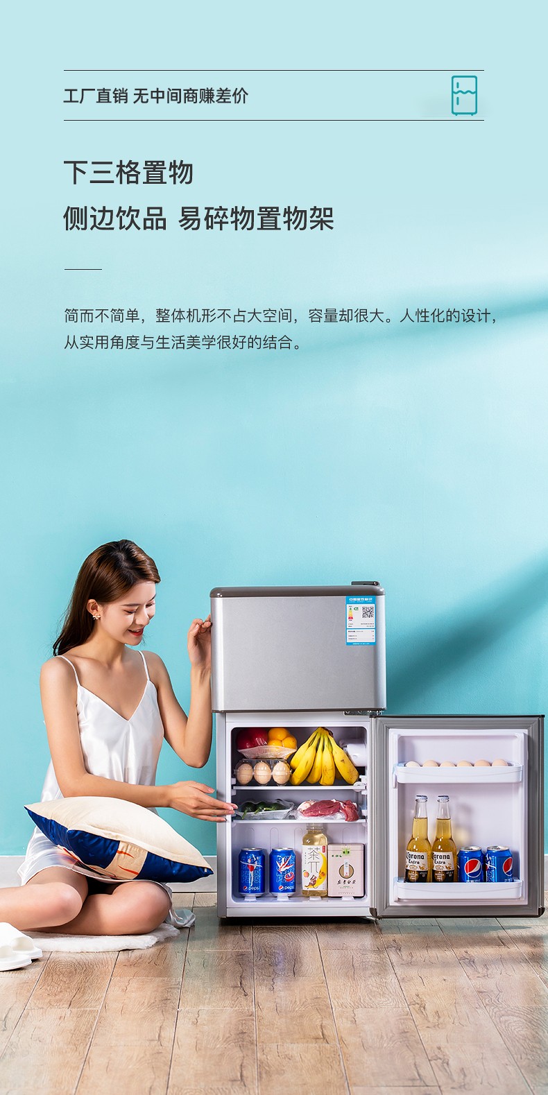 商品名称:小型双开门小冰箱 冷冻冷藏迷你电冰箱