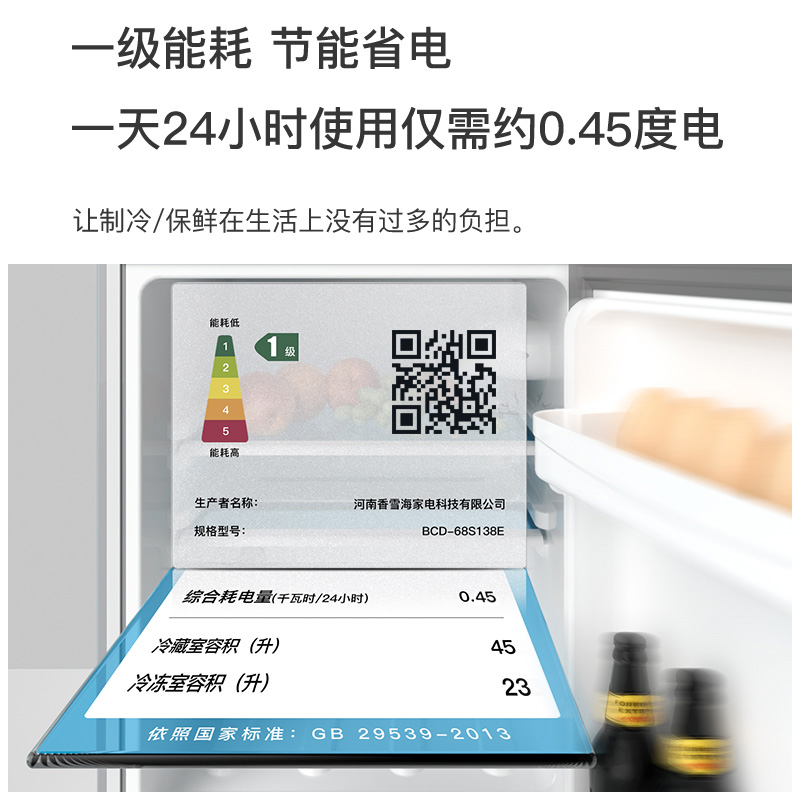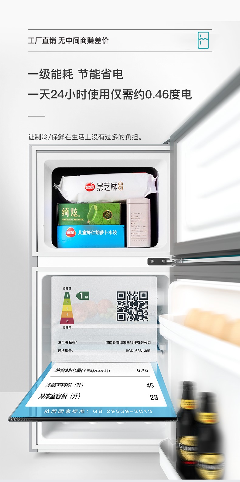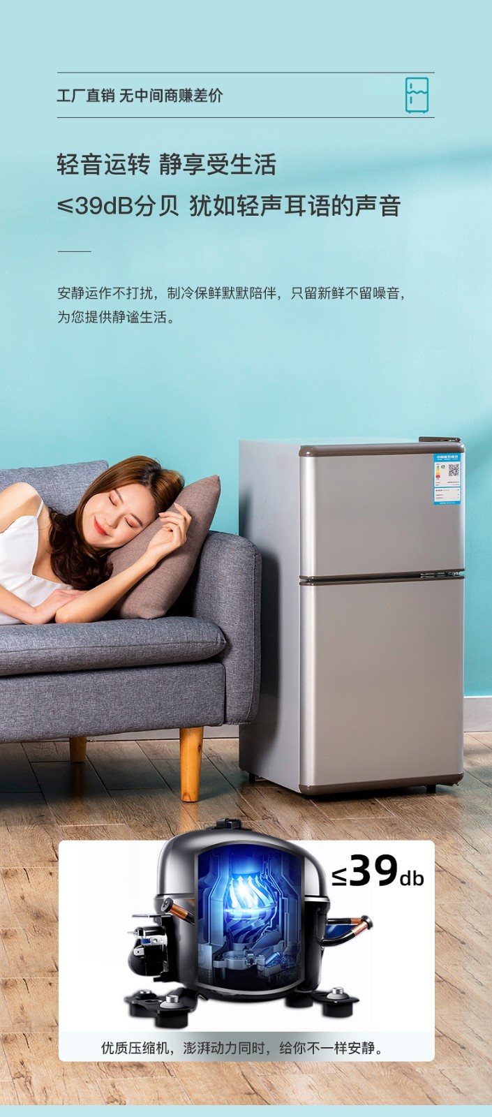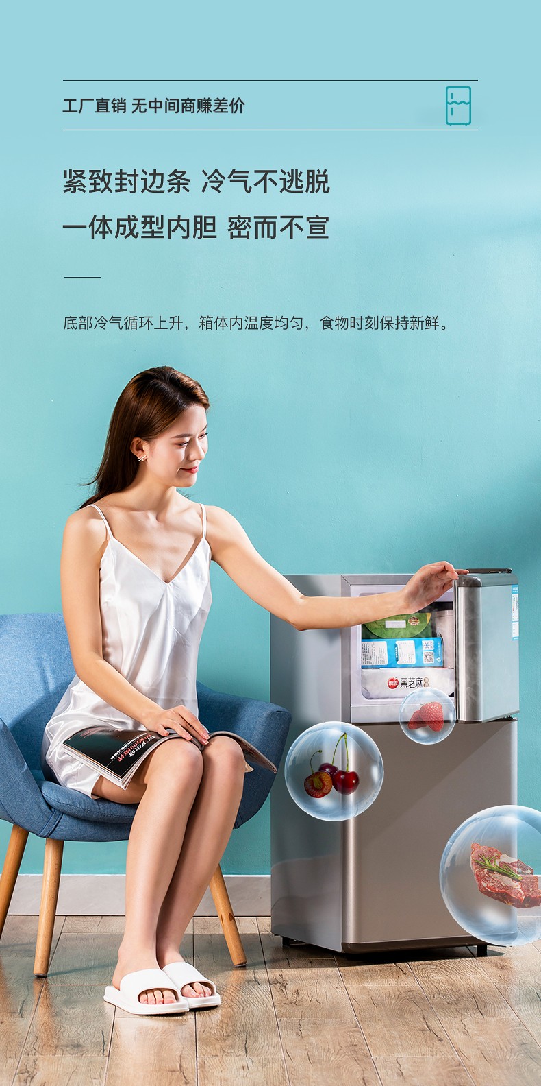 商品名称:小型双开门小冰箱 冷冻冷藏迷你电冰箱