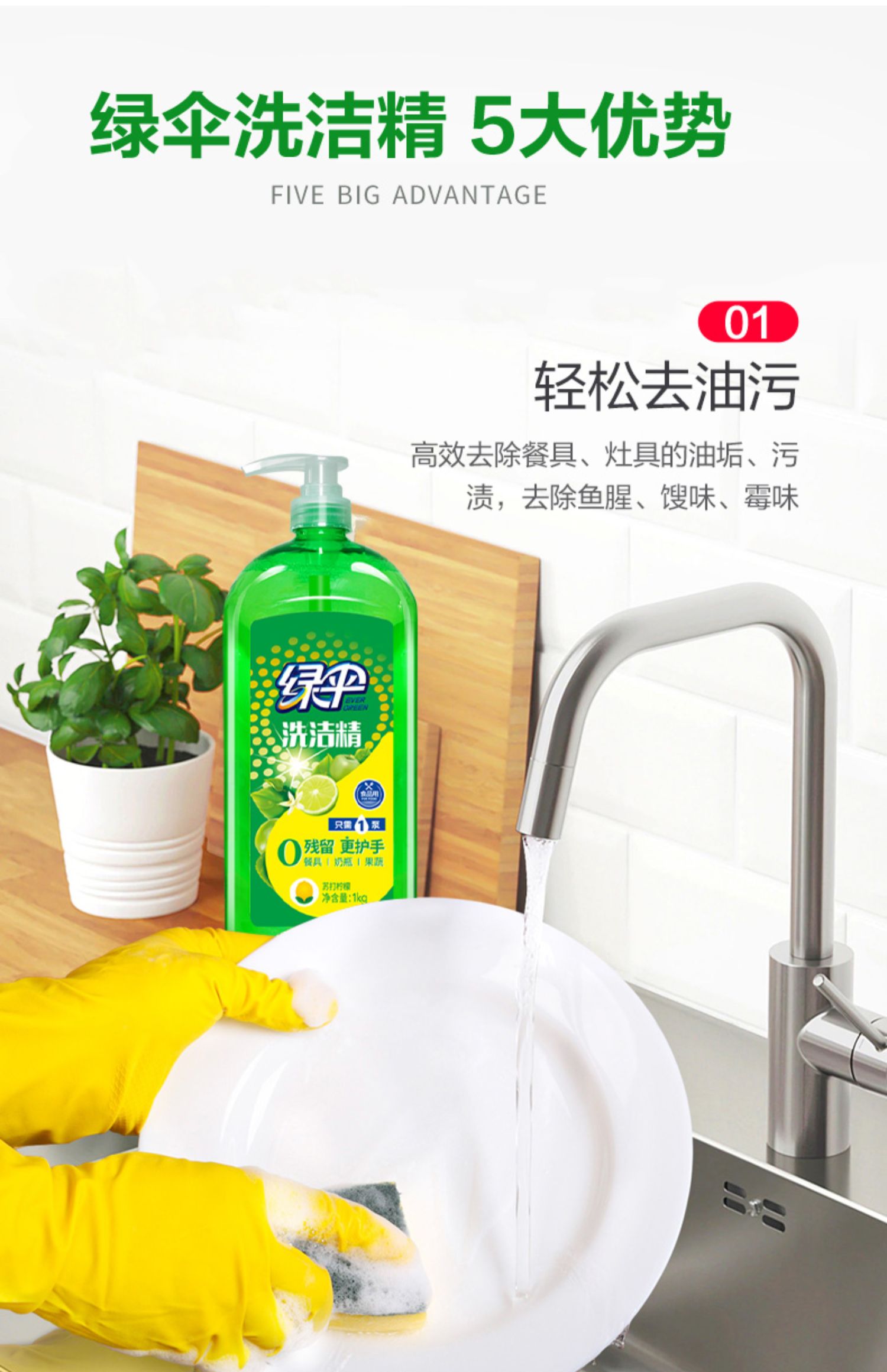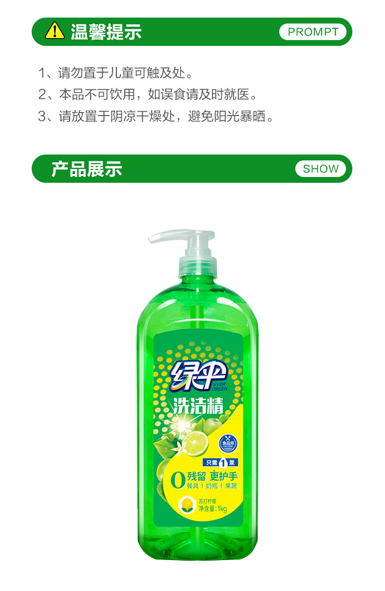 商品名称:绿伞柠檬洗洁精1kg*2瓶