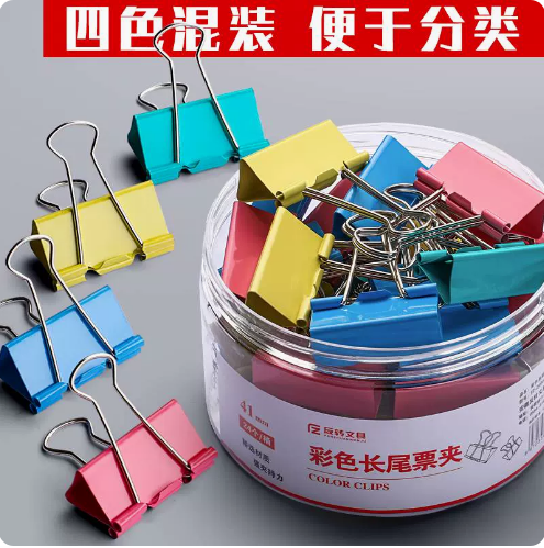 商品名称:简贝迪彩色长尾夹燕尾夹50mm/2筒共24枚