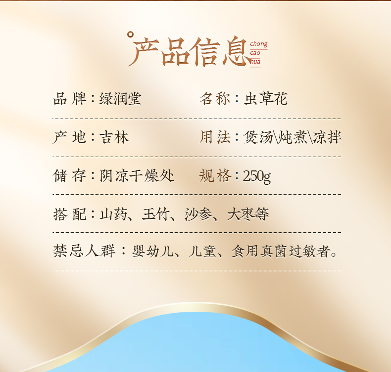 商品名称:长白山虫草花干货250g/袋
