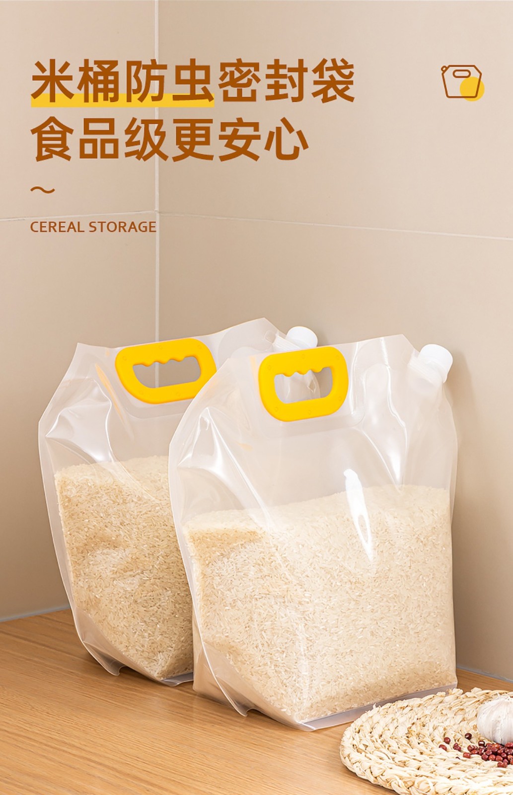 商品名称:大米面粉防潮防虫密封袋10斤 3.3口径*5个装