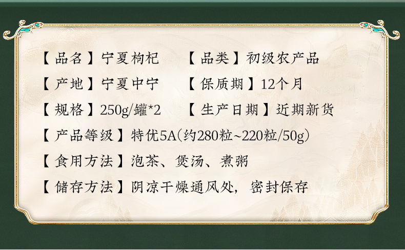 商品名称:正宗宁夏枸杞特级250g*2罐