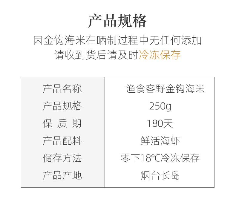 商品名称:长岛淡干无盐即食金钩海米250g/罐