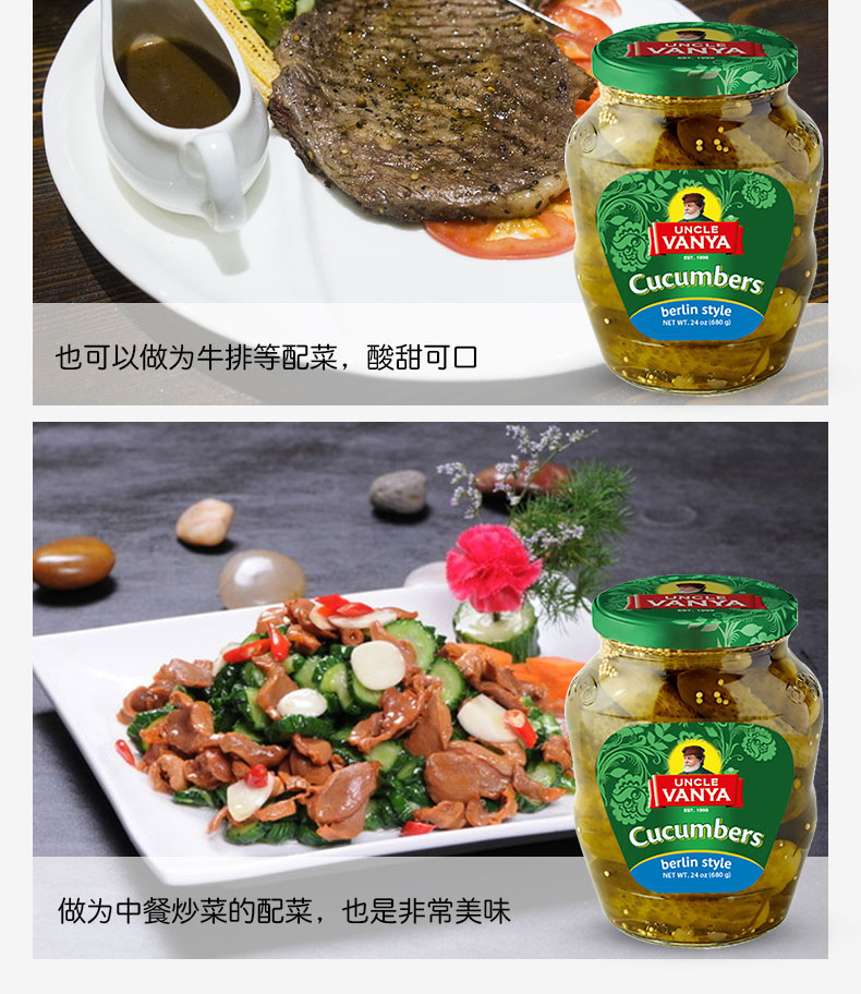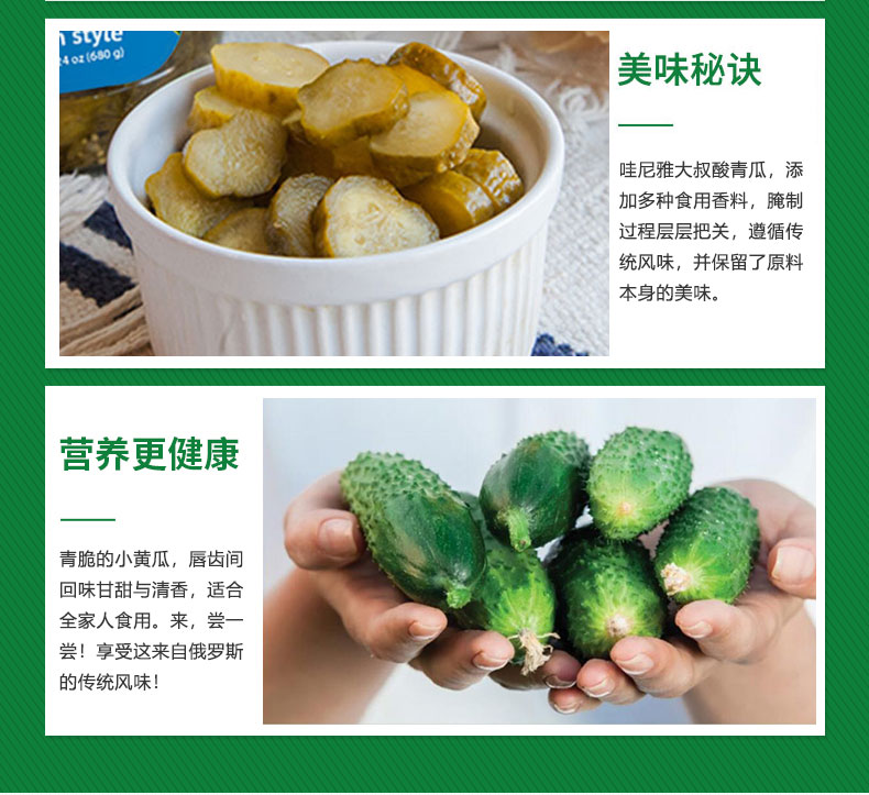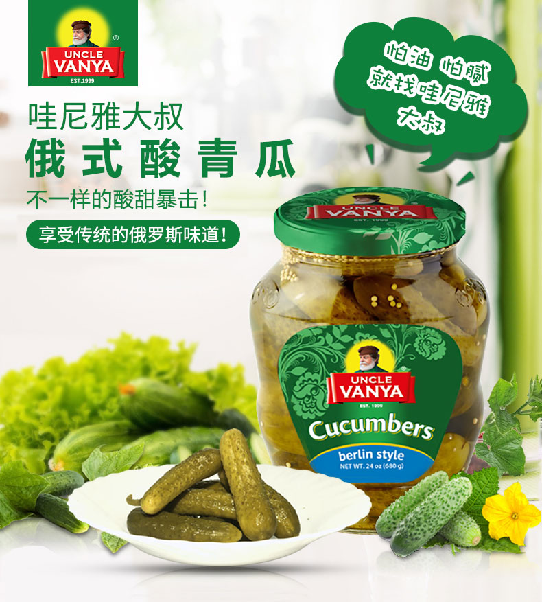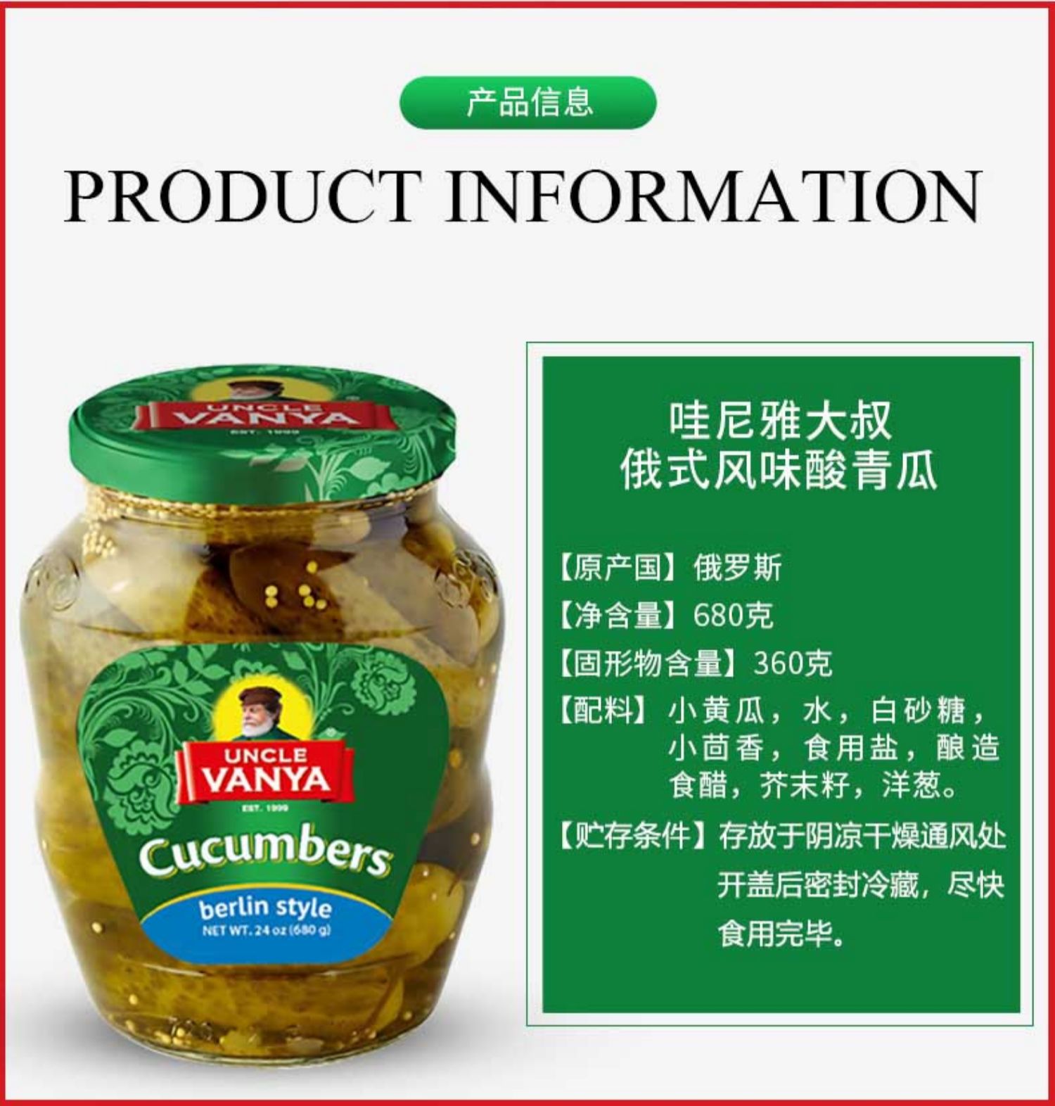 商品名称:哇尼雅大叔俄式酸黄瓜680g*2瓶