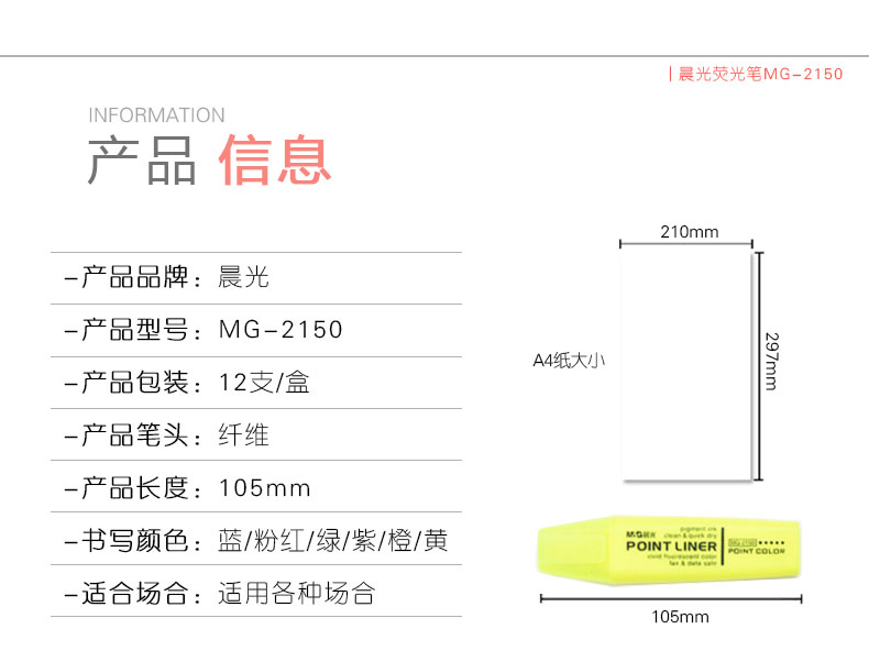 商品名称:晨光荧光笔彩色标记笔学生单头记号笔彩色笔粗划重点套装记号笔标记笔莹光彩色笔夜光笔银光笔萤光笔办公用品