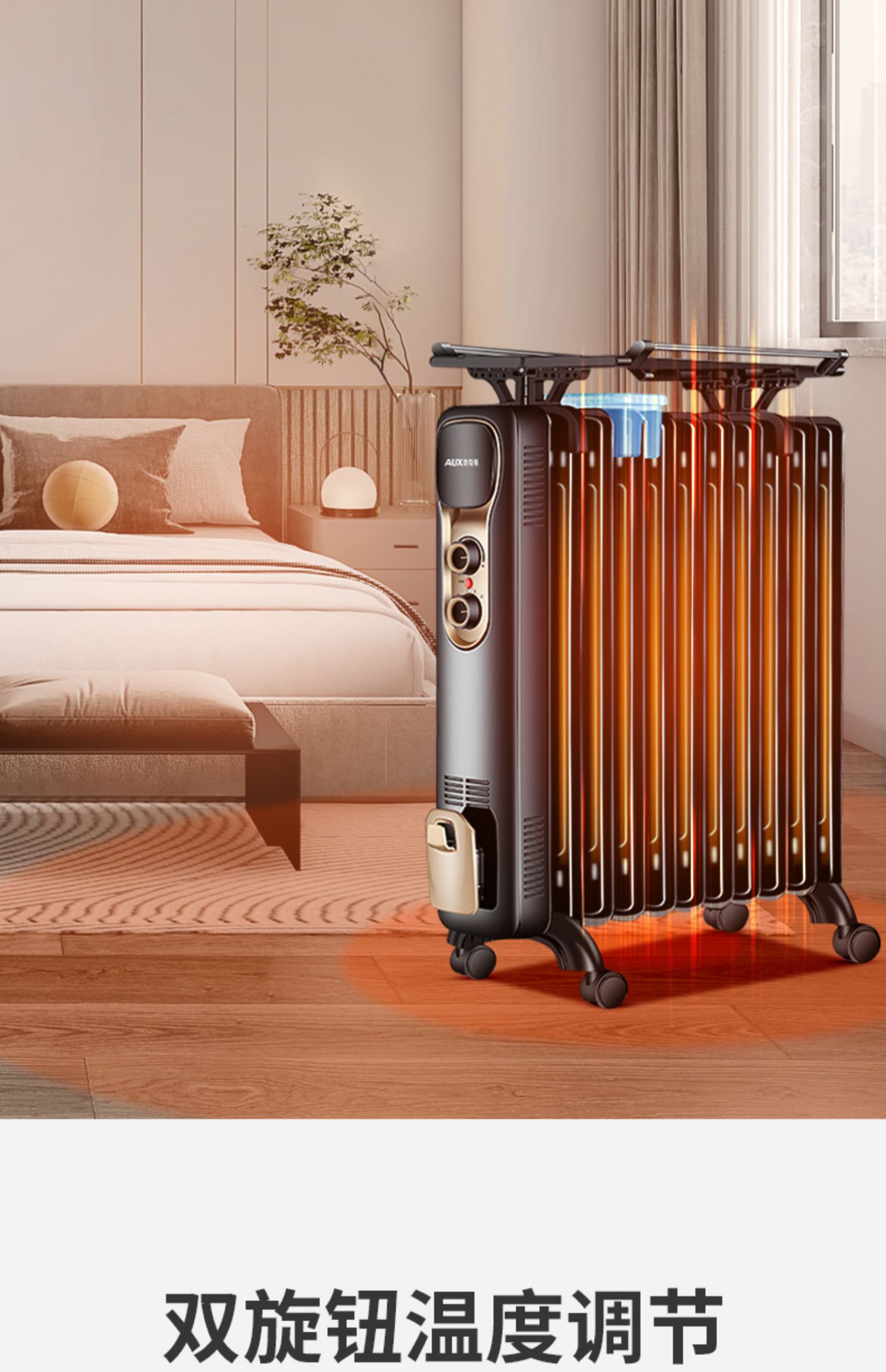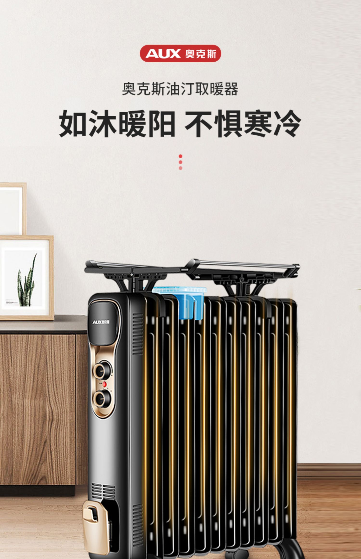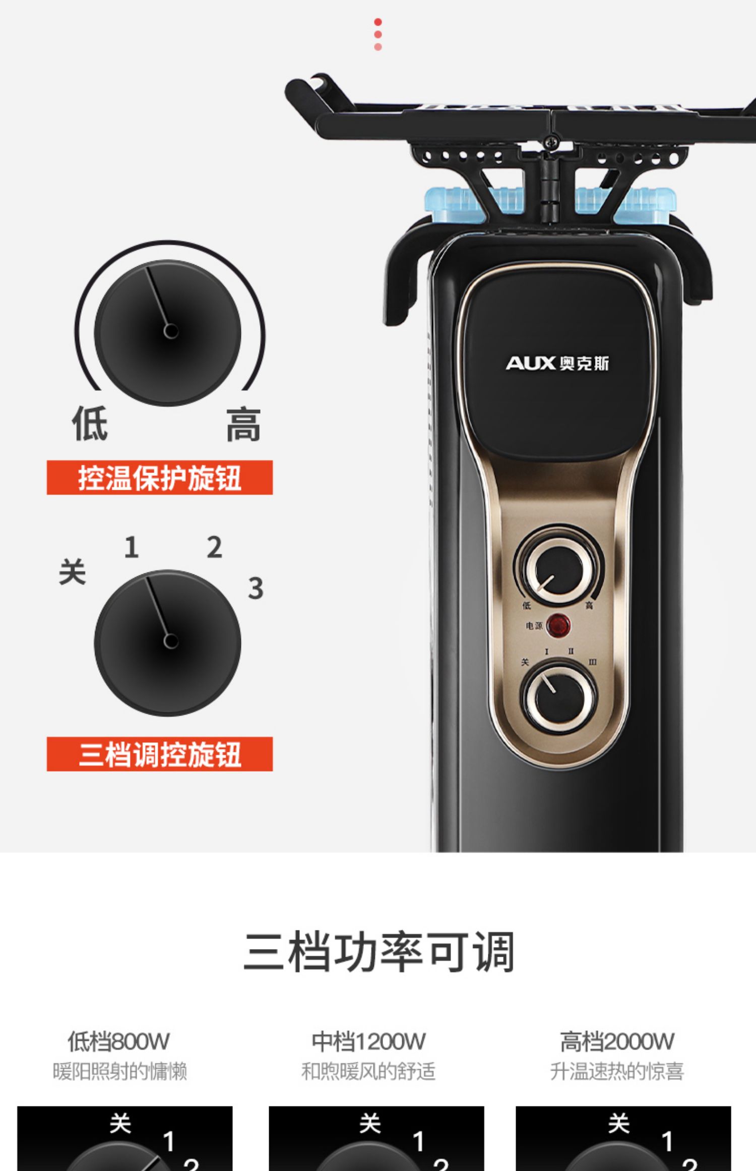商品名称:奥克斯家用静音电暖气黑色13片