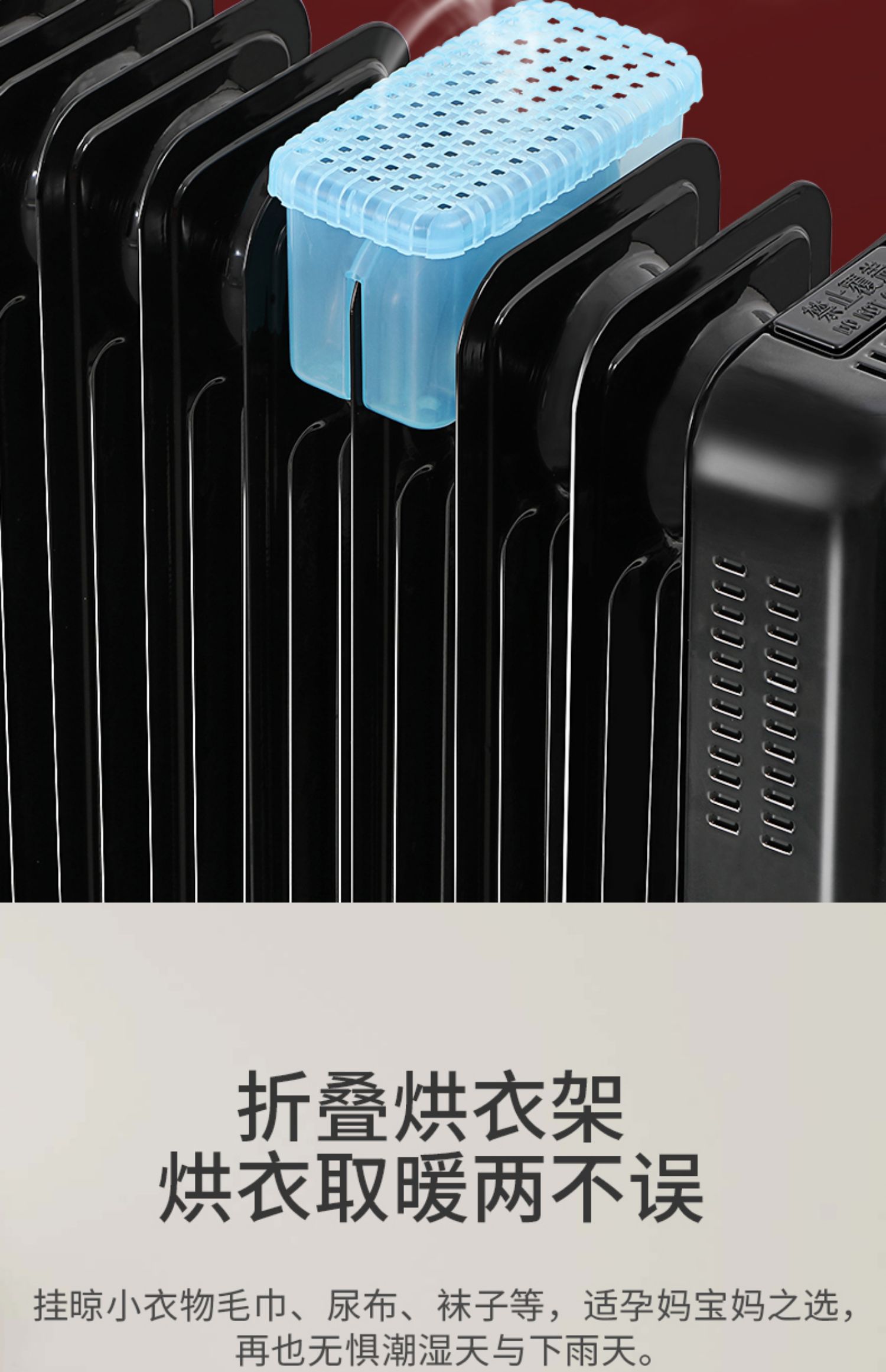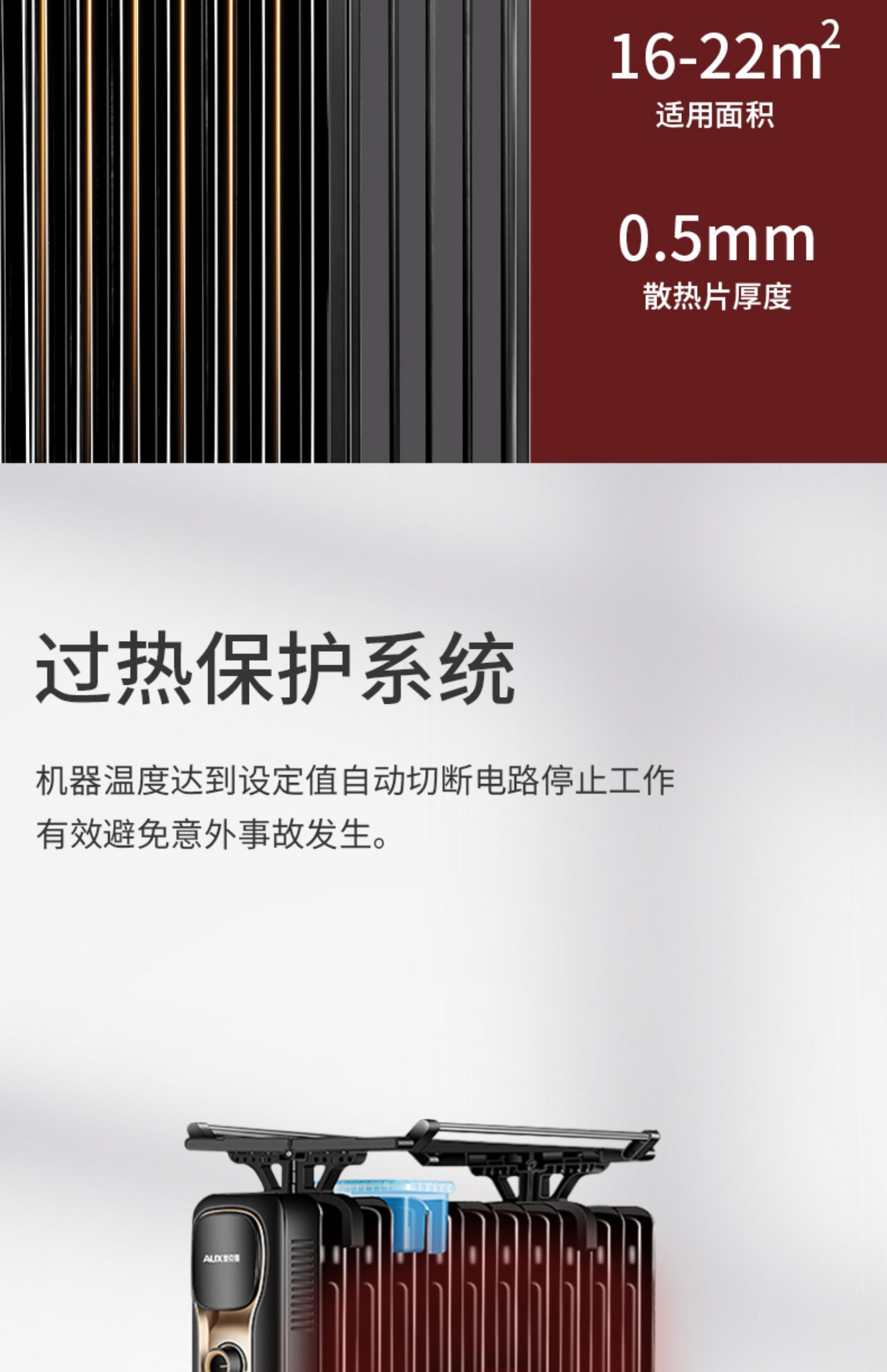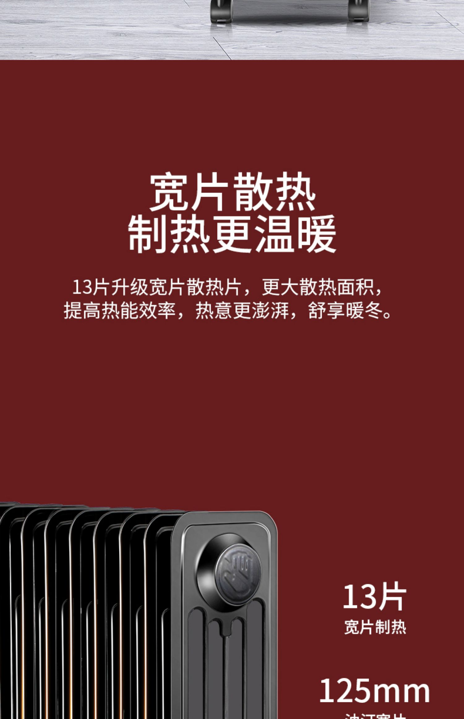 商品名称:奥克斯家用静音电暖气黑色13片