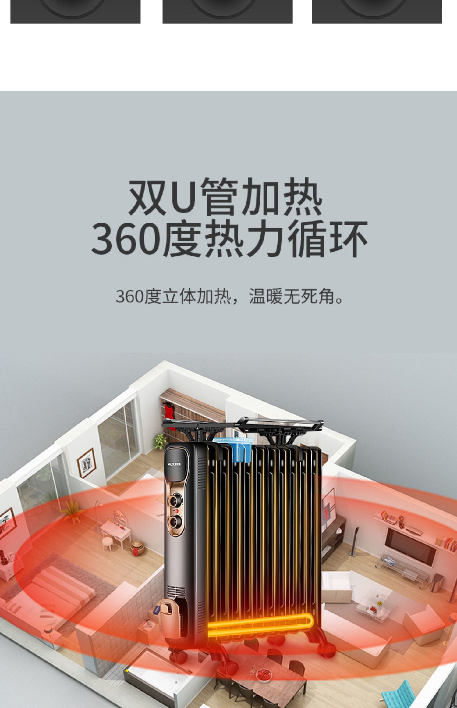 奥克斯家用静音电暖气黑色13片