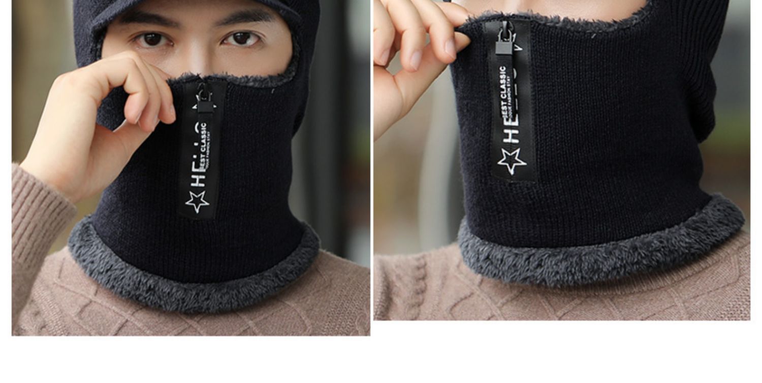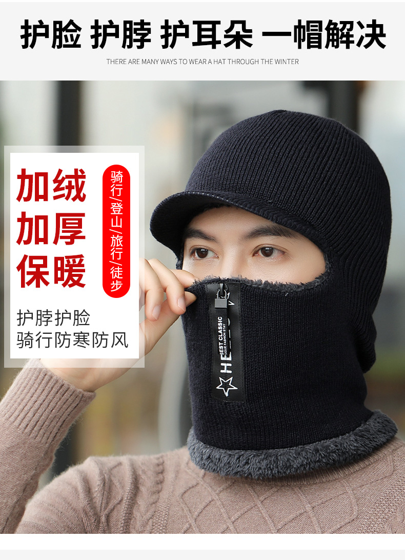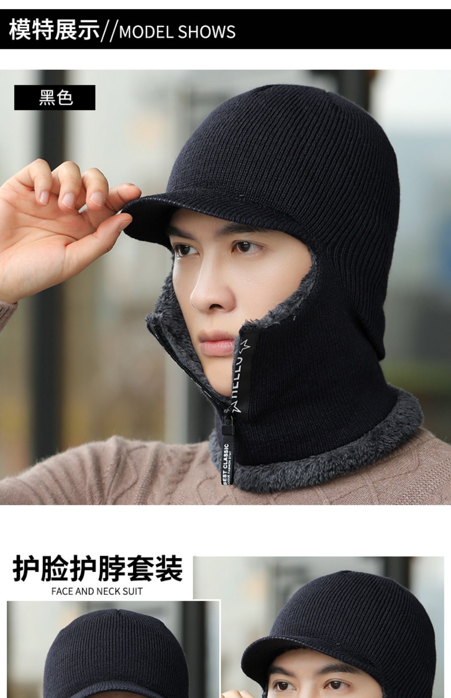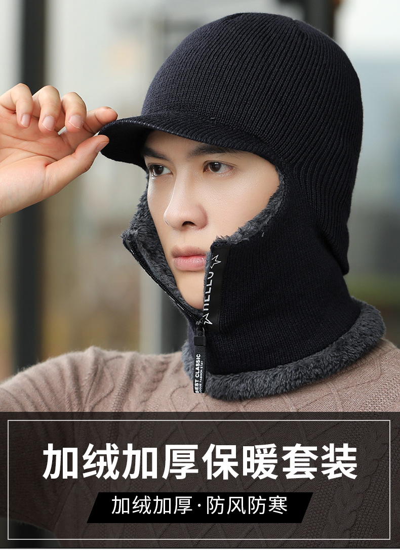 商品名称:男士保暖毛线帽围脖一体棉帽黑色