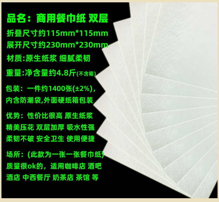 商品名称:餐巾纸方巾纸整箱装【约1400张】