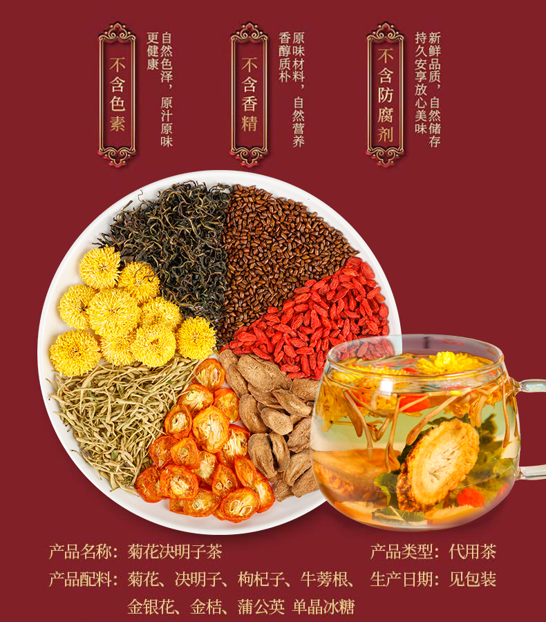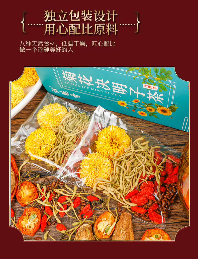商品名称:菊花枸杞决明子茶金银花桂花茶养生茶包透明袋10包/盒