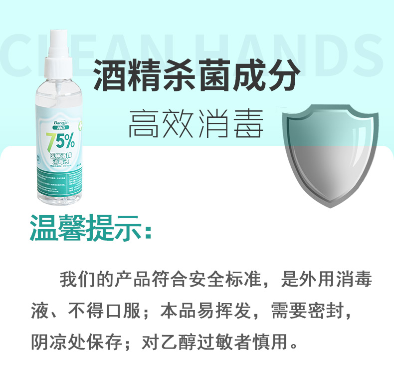 商品名称:便携75度乙醇酒精喷雾 100ml*5瓶
