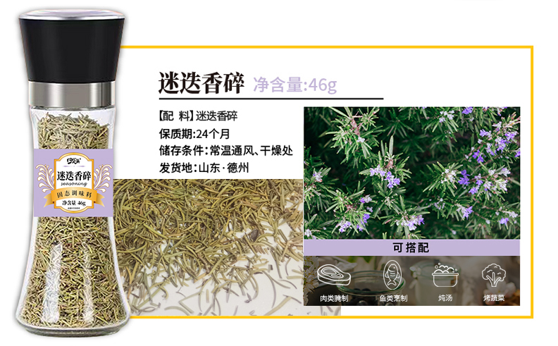 商品名称:迷迭香碎46g/瓶【带研磨】