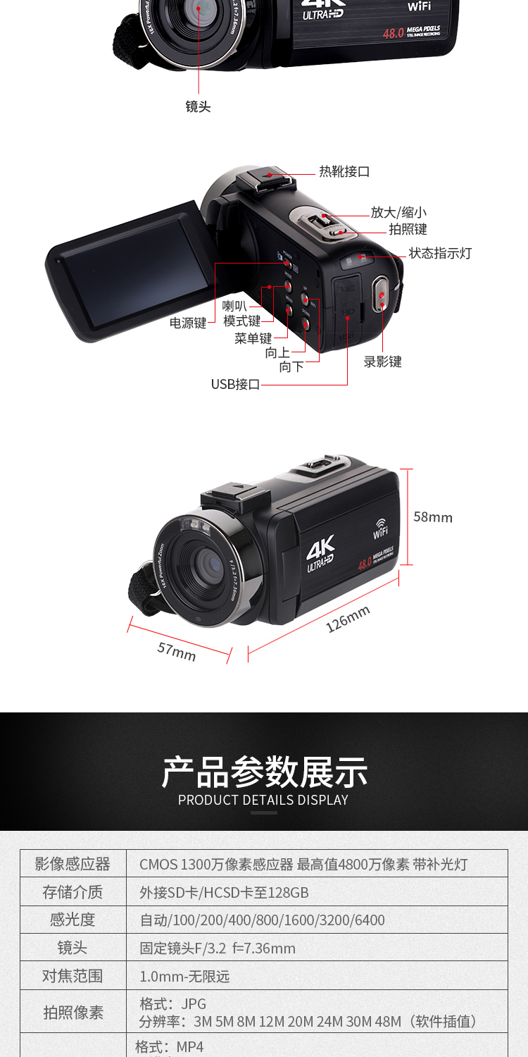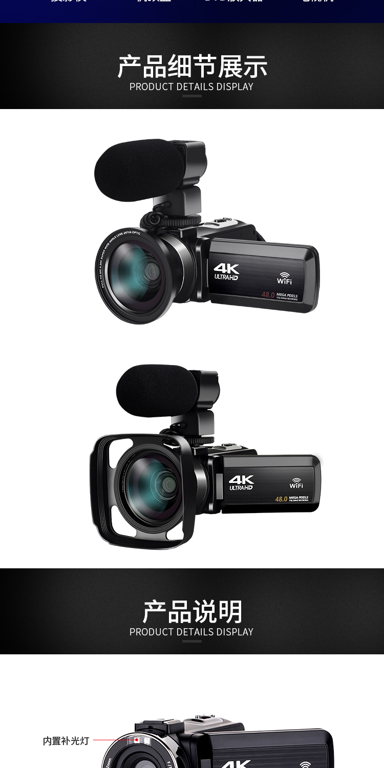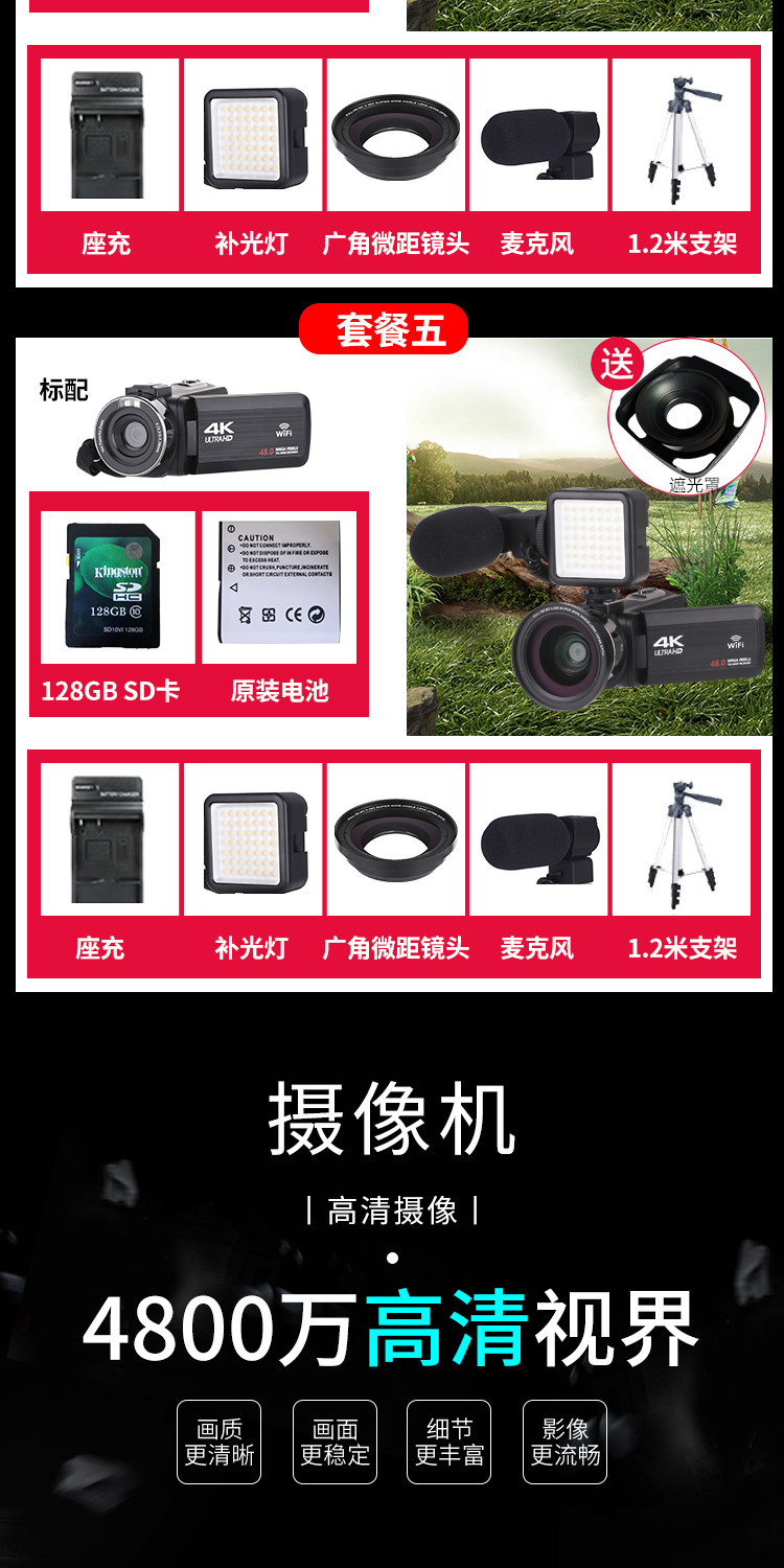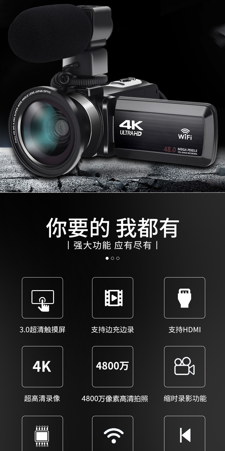 商品名称:数码摄像机4K高清专业带WiF家用旅游DV录像机Vlog快手摄影照相机