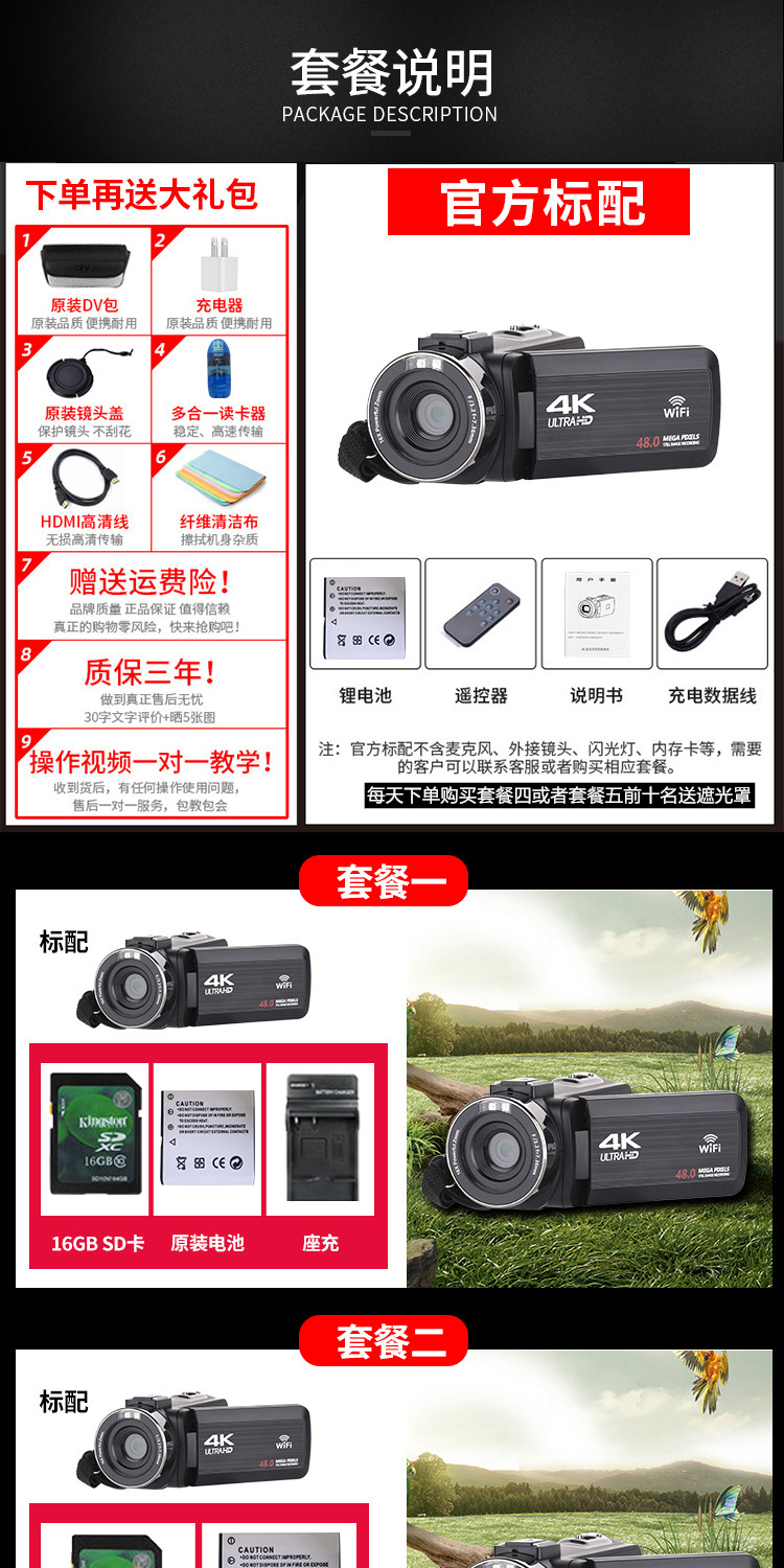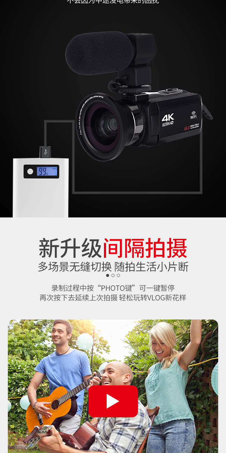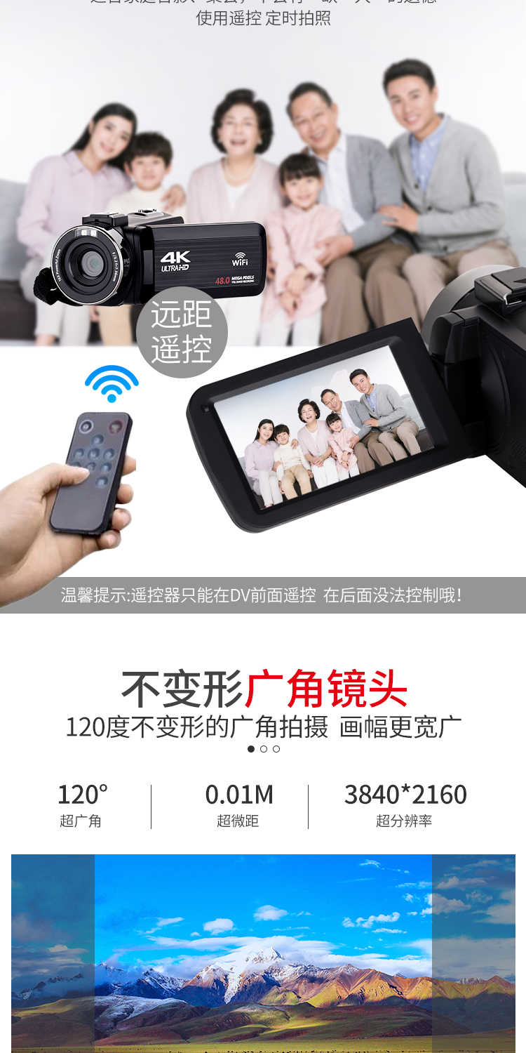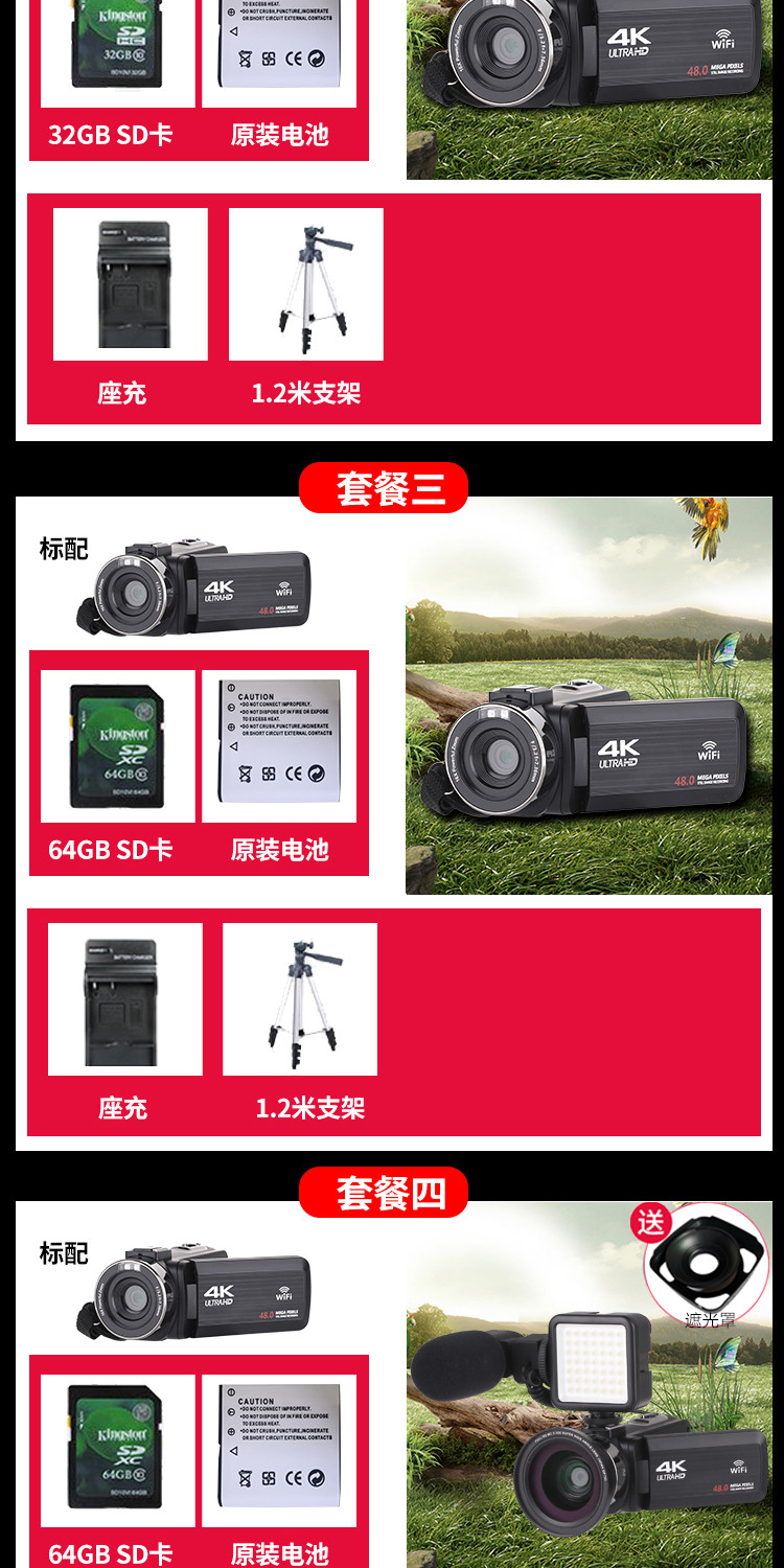 商品名称:数码摄像机4K高清专业带WiF家用旅游DV录像机Vlog快手摄影照相机