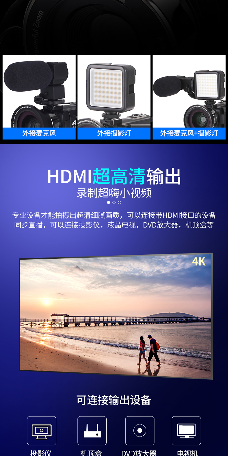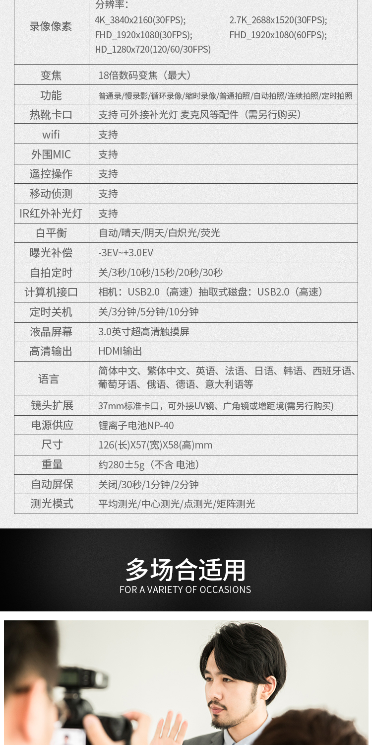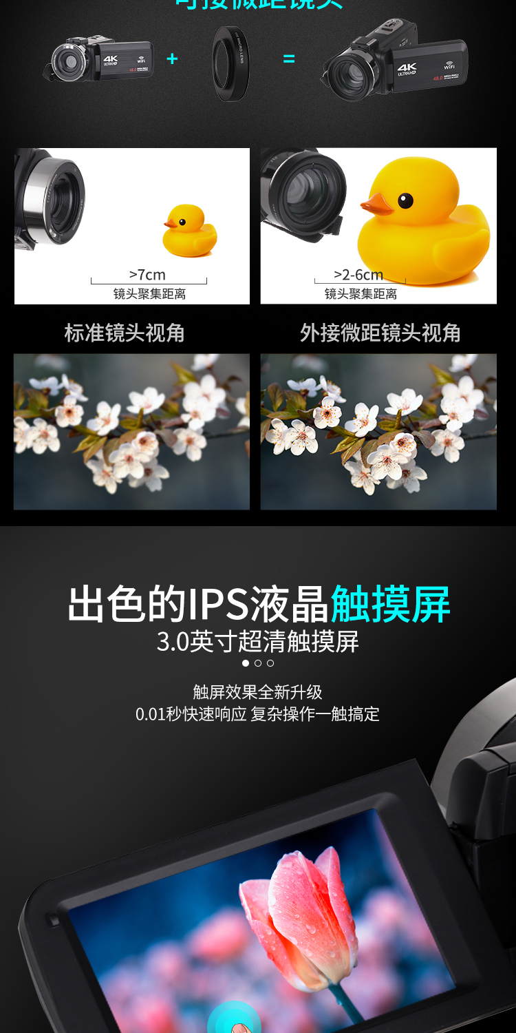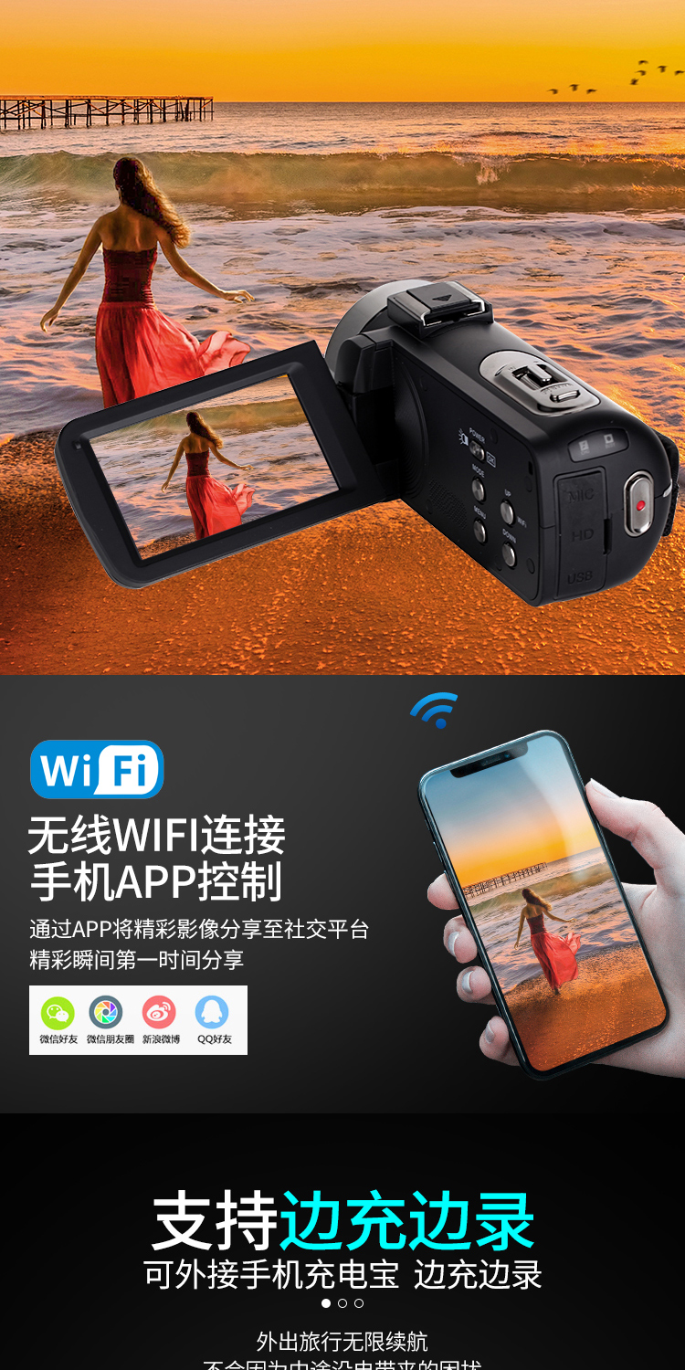 商品名称:数码摄像机4K高清专业带WiF家用旅游DV录像机Vlog快手摄影照相机