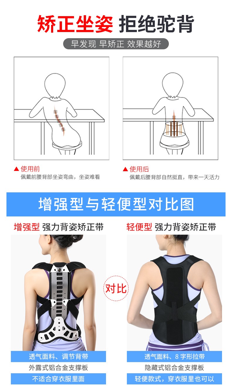 商品名称:驼背矫正器治驼背神器成年纠正脊柱侧弯背部坐姿儿童隐形矫姿带男