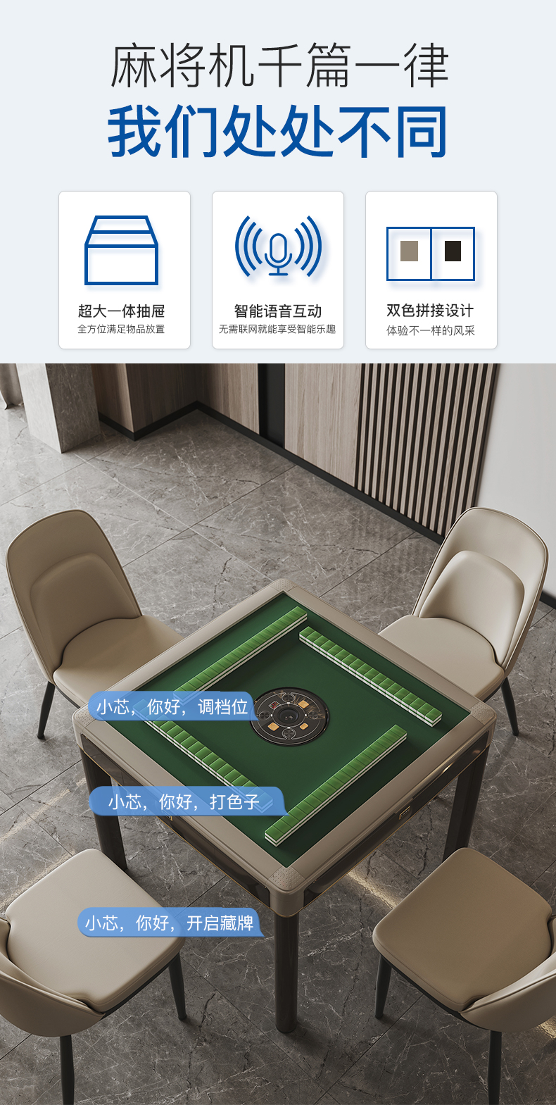 鸿胜智能麻将机全自动餐桌两用麻将桌家用棋牌过山车静音简约电动