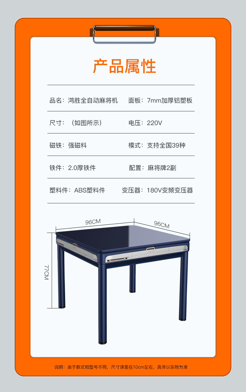 商品名称:鸿胜智能麻将机全自动餐桌两用麻将桌家用棋牌过山车静音简约电动